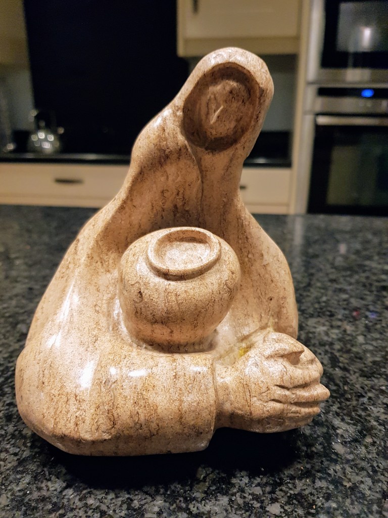 Made from a bit of “scrap” Alabaster found on a beach.