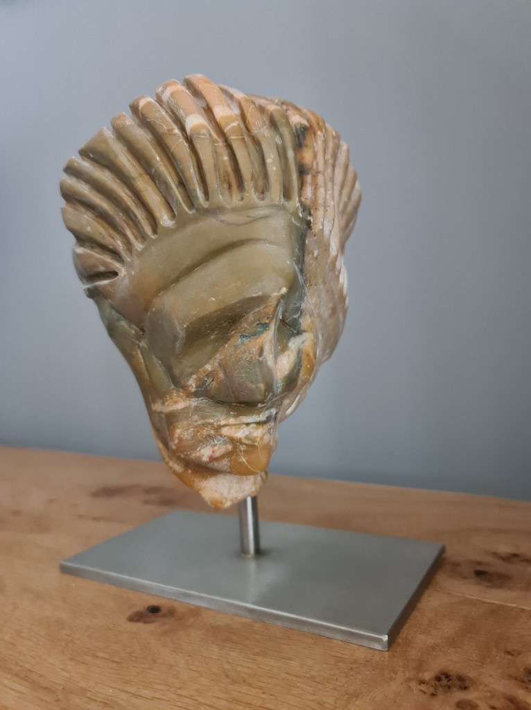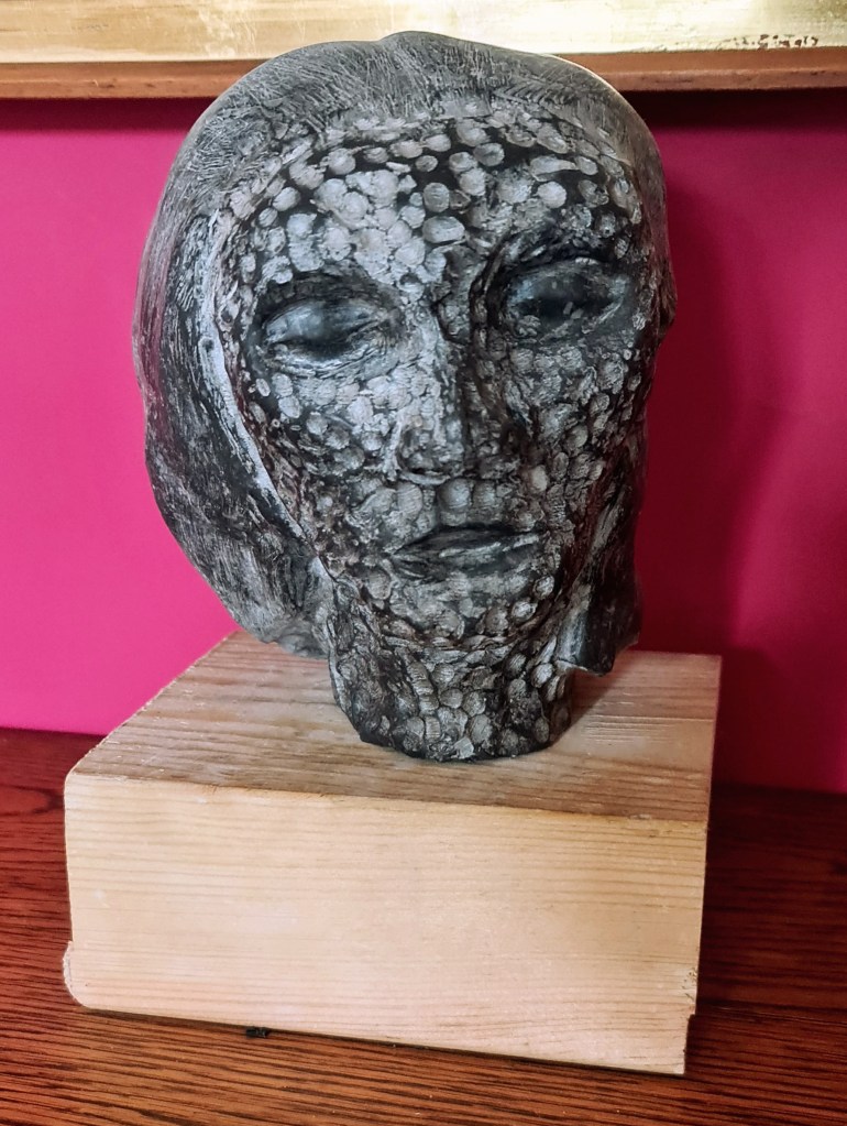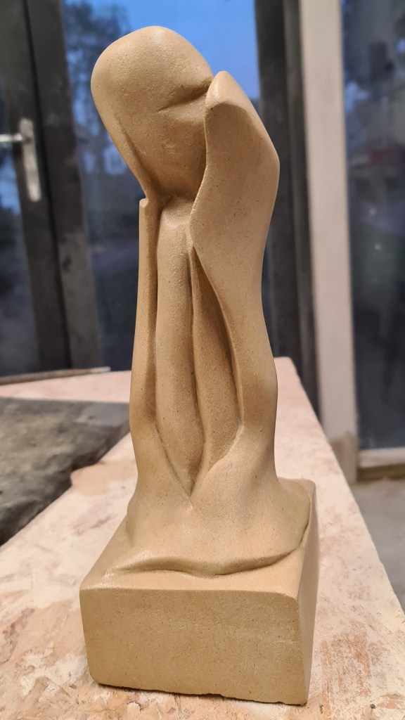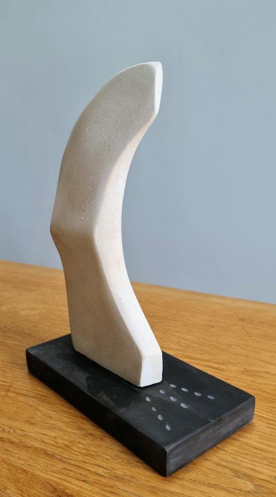Soapstone. I have recently become interested in war memorials. Although they are common-place in London, I was intrigued by the recent work of historian, Dr Alice Kelly, looking at contemporary meaning in these now-familiar objects. This piece, carved from Serpentine, is designed to reflect the experiences of those who did survive, but were permanently affected by “shell-shock” (or PTSD as we know it today).